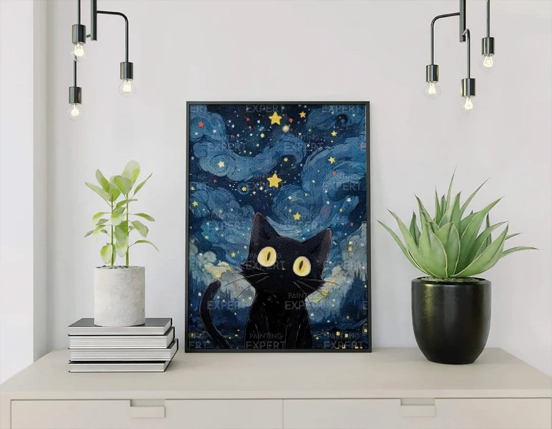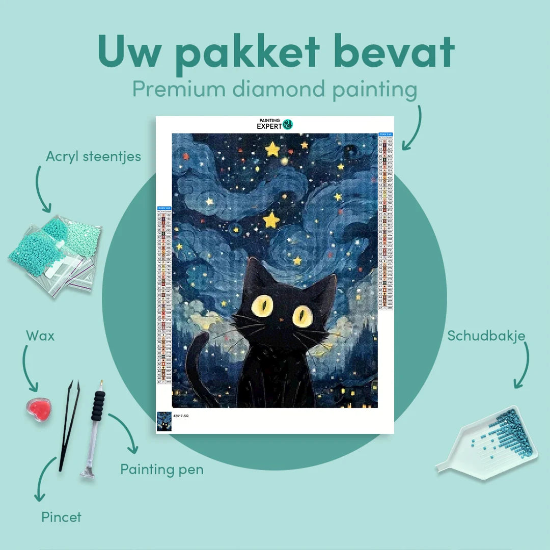 Diamond Painting Kat in de Nacht