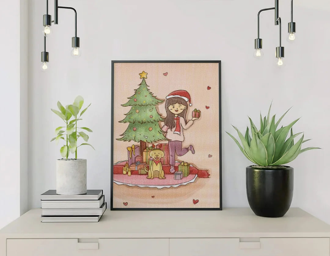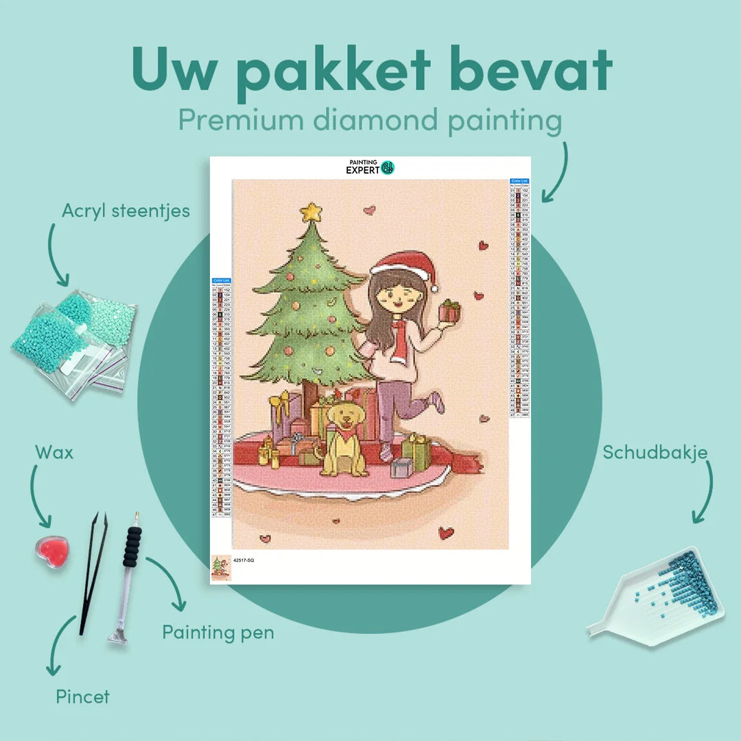 Diamond Painting Kerst, Vrouw en Hond