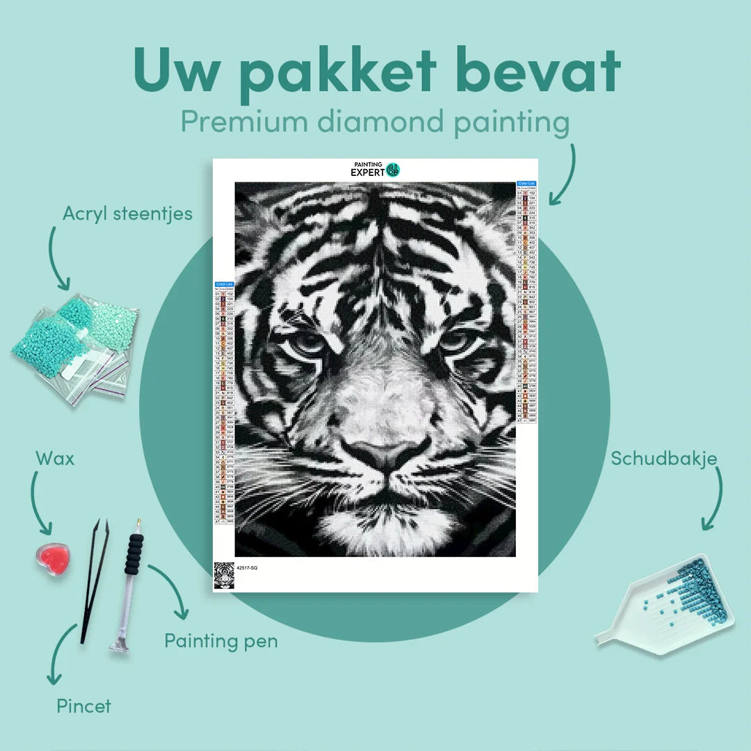 Diamond Painting Zwart-Wit Tijger