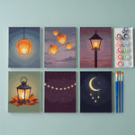 Deze Lantaarns in de schemering mini set uit onze schilderen op nummer mini collectie is ideaal om als cadeau te geven, zelf te maken en vervolgens op te hangen aan de muur of in een kinderkamer. Het compacte formaat van 15x20cm maakt het mogelijk om in 2-3 uur een prachtig kunstwerk te creëren, zonder dat je een hele avond kwijt bent.