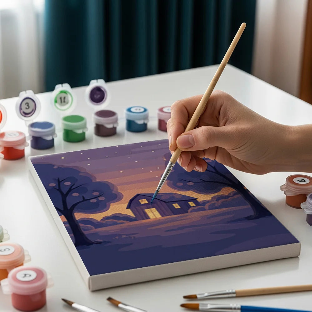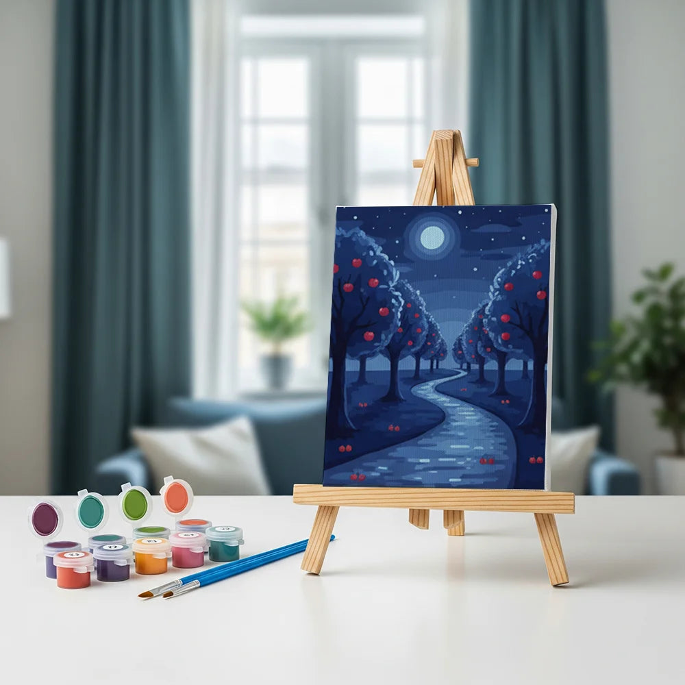 Breng de Orchardnacht met sterren - Schilderen op Nummer Mini's tot leven met deze prachtige mini set. Perfect voor een ontspannen creatief moment, alles zit inbegrepen en is ideaal voor een nieuwe creatieve hobbymiddag!