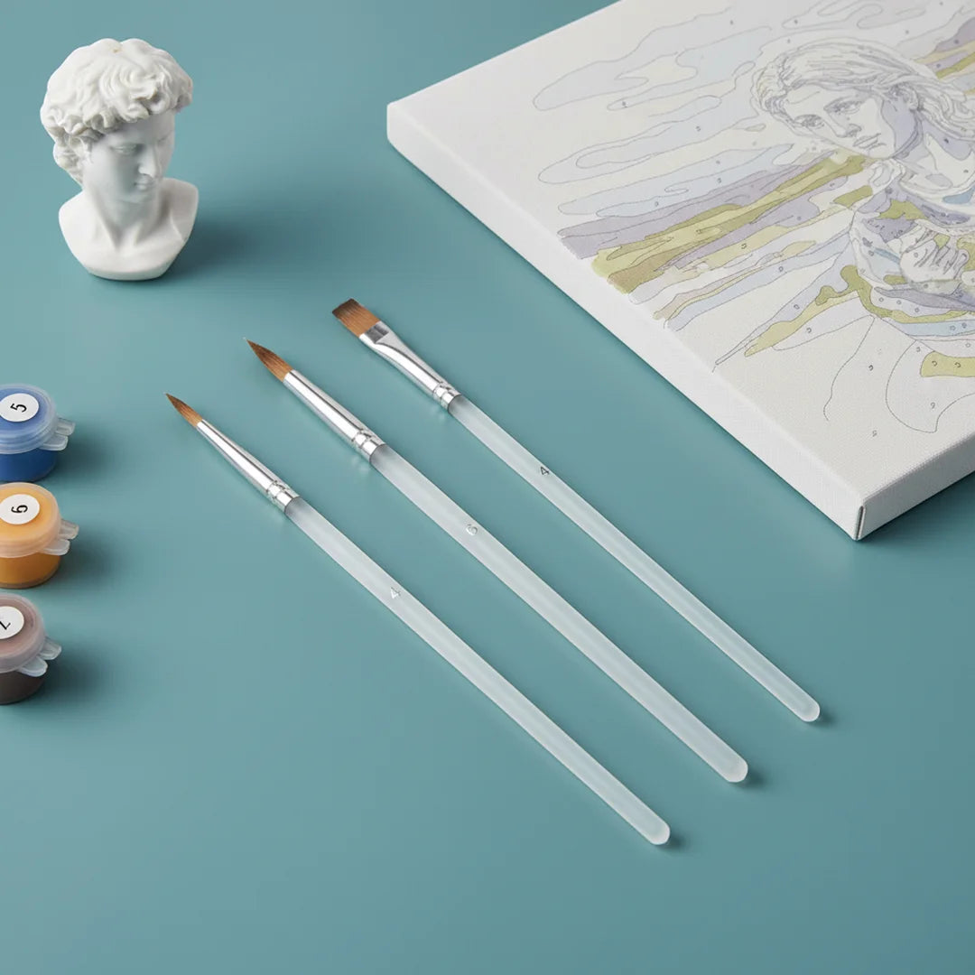 Deze penselen zijn het ultieme gereedschap voor de fijnste details in uw schilder-op-nummer avontuur. Ze zijn vervaardigd met duurzame, hoogwaardige haren en een elegant, comfortabel handvat. Hierdoor glijden de penselen soepel over het doek en geven ze u een ongekende controle en nauwkeurigheid bij elke streek.