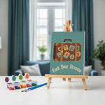 Deze Retro reistempo mini set uit onze schilderen op nummer mini collectie is ideaal om als cadeau te geven, zelf te maken en vervolgens op te hangen aan de muur of in een kinderkamer. Het compacte formaat van 15x20cm maakt het mogelijk om in 2-3 uur een prachtig kunstwerk te creëren, zonder dat je een hele avond kwijt bent.