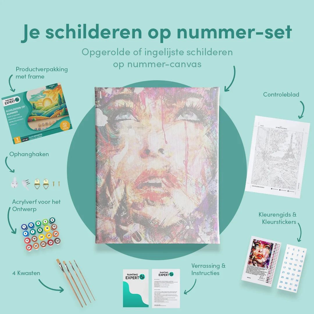 Bij ons ontvang je een compleet schilderen op nummer-pakket, inclusief alle benodigde materialen. Geen gedoe, gewoon direct beginnen! Elk pakket bevat:
