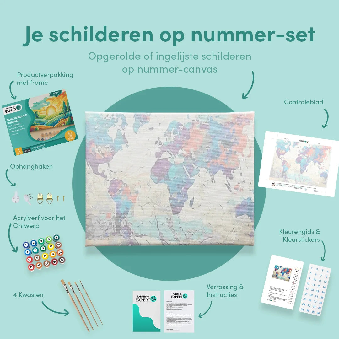 Bij ons ontvang je een compleet schilderen op nummer-pakket, inclusief alle benodigde materialen. Geen gedoe, gewoon direct beginnen! Elk pakket bevat: