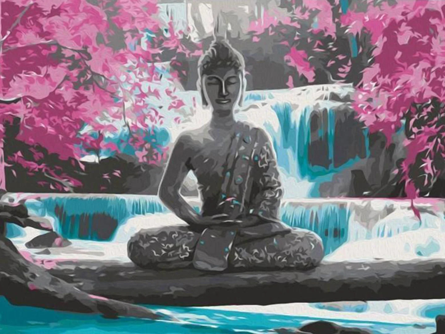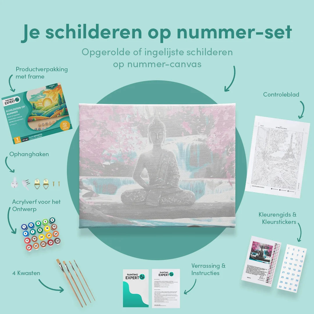 Schilderen op nummer Boeddha Roze Bloemetjes