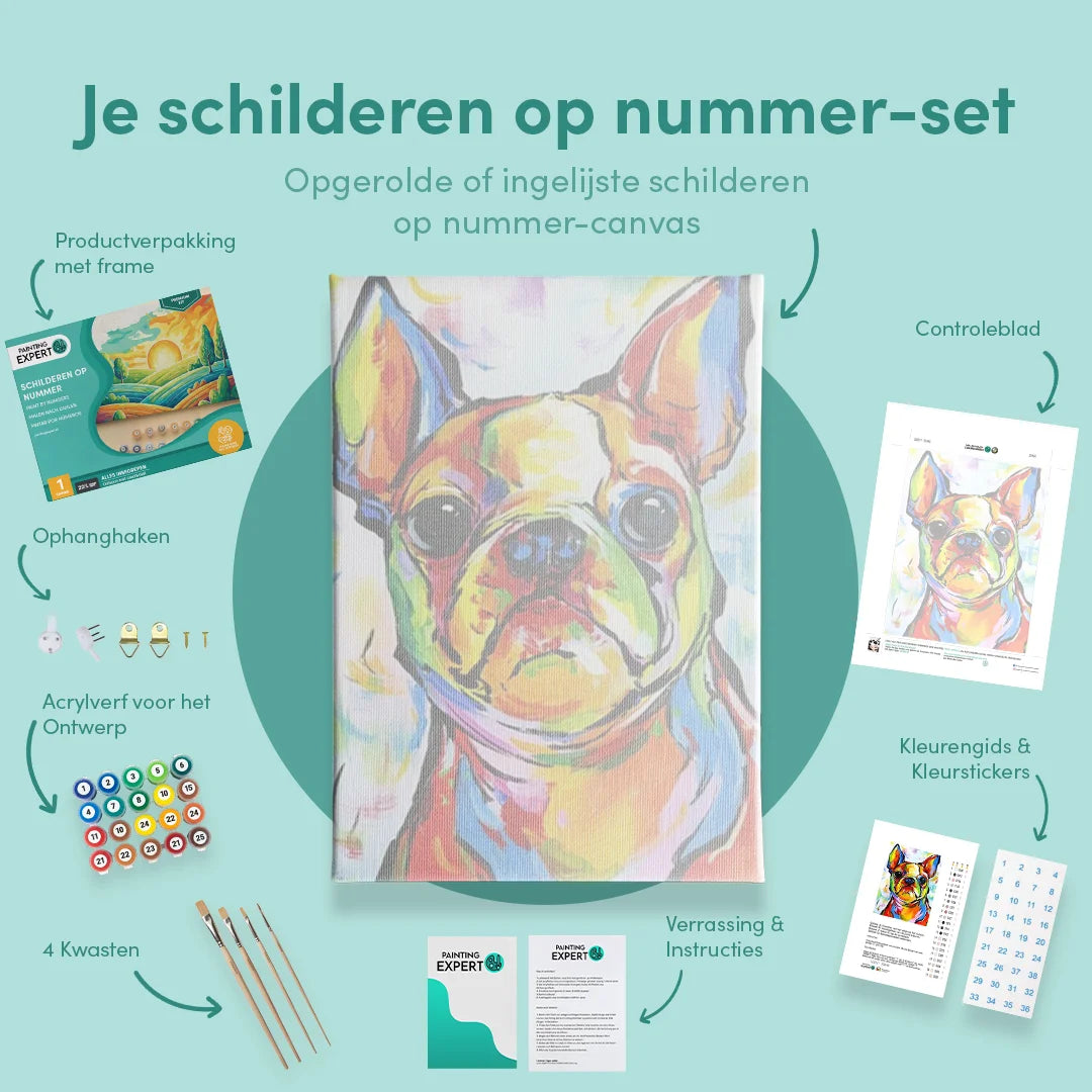 Schilderen op nummer Bulldog Vrolijke Kleuren