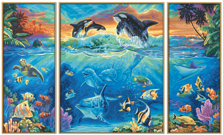Schilderen op nummer Drieluik Zee