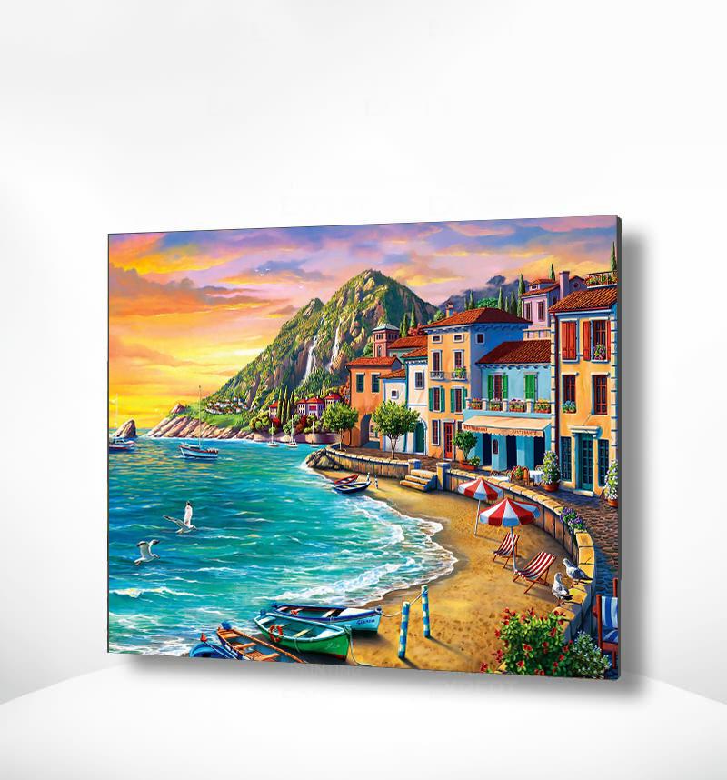 Schilderen op nummer Gekleurde Huisjes aan Zee