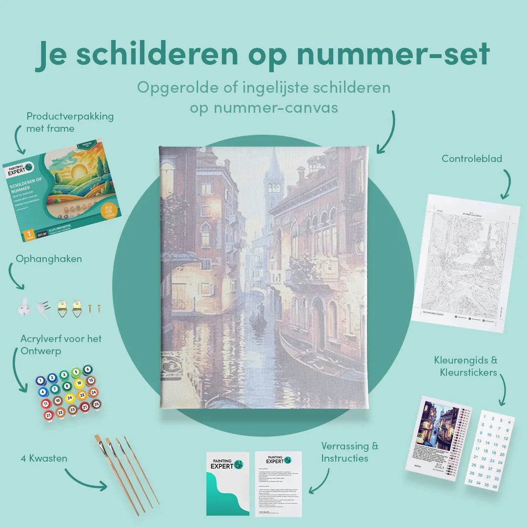Bij ons ontvang je een compleet schilderen op nummer-pakket, inclusief alle benodigde materialen. Geen gedoe, gewoon direct beginnen! Elk pakket bevat: