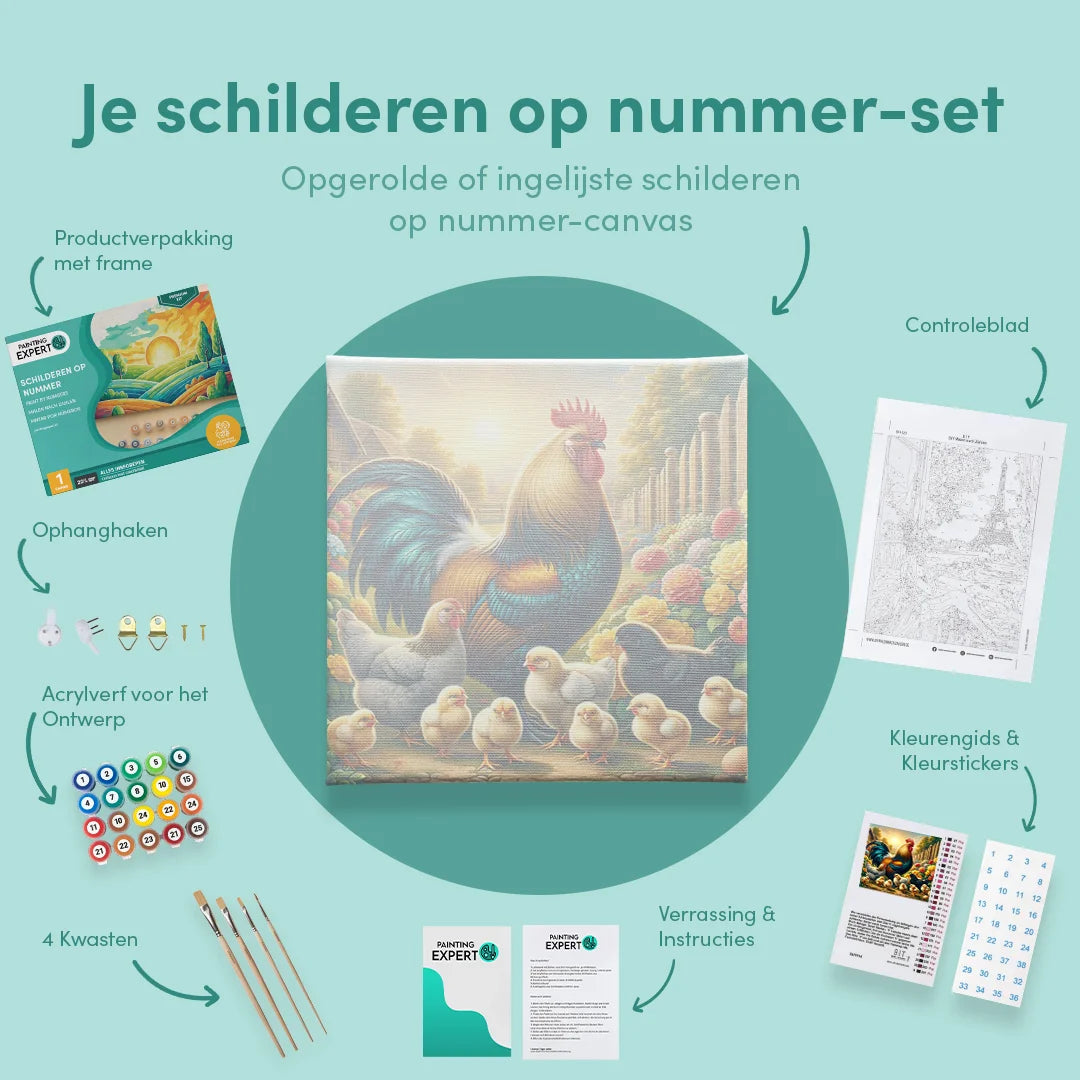 Bij ons ontvang je een compleet schilderen op nummer-pakket, inclusief alle benodigde materialen. Geen gedoe, gewoon direct beginnen! Elk pakket bevat: