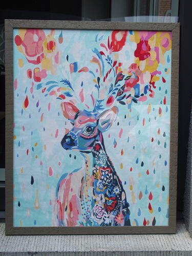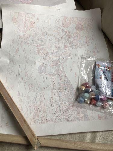 Na meer dan 3 weken wachten, werd mijn canvas eindelijk geleverd. Jammer genoeg kwam het als een bouwpakket binnen. De lijst is ook nog een te klein voor het doek Ć©n er zat geen beschrijving bij hoe ik de lijst en het doek kon monteren. Ook vind ik het jammer dat de codes van de kleuren op het doek niet overeenkomen met de nummers op de potjes. Dit moet eerst nog worden āvertaaldā. Bijvoorbeeld 1024=7. Erg jammer.