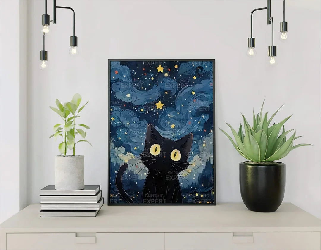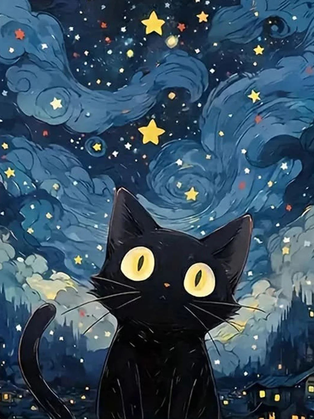 Schilderen op Nummer Mysterieuze Kat in de Nacht