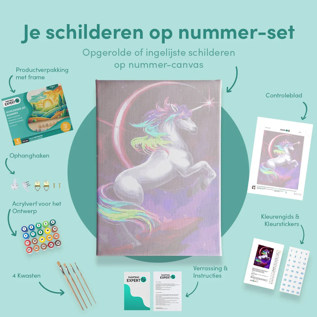 Bij ons ontvang je een compleet schilderen op nummer-pakket, inclusief alle benodigde materialen. Geen gedoe, gewoon direct beginnen! Elk pakket bevat: