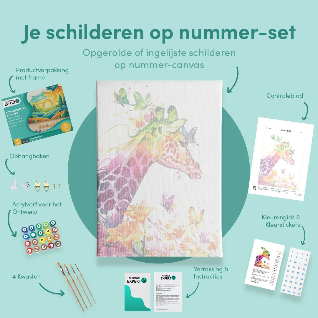 Bij ons ontvang je een compleet schilderen op nummer-pakket, inclusief alle benodigde materialen. Geen gedoe, gewoon direct beginnen! Elk pakket bevat: