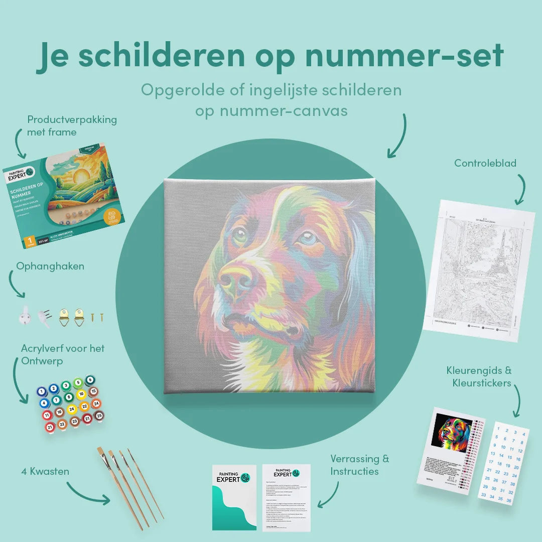 Bij ons ontvang je een compleet schilderen op nummer-pakket, inclusief alle benodigde materialen. Geen gedoe, gewoon direct beginnen! Elk pakket bevat: