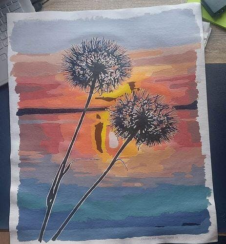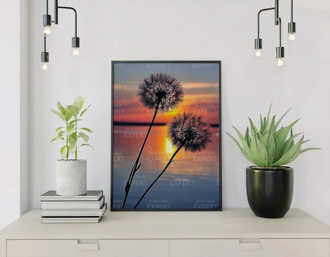 Schilderen op nummer Paardenbloem Zonsondergang