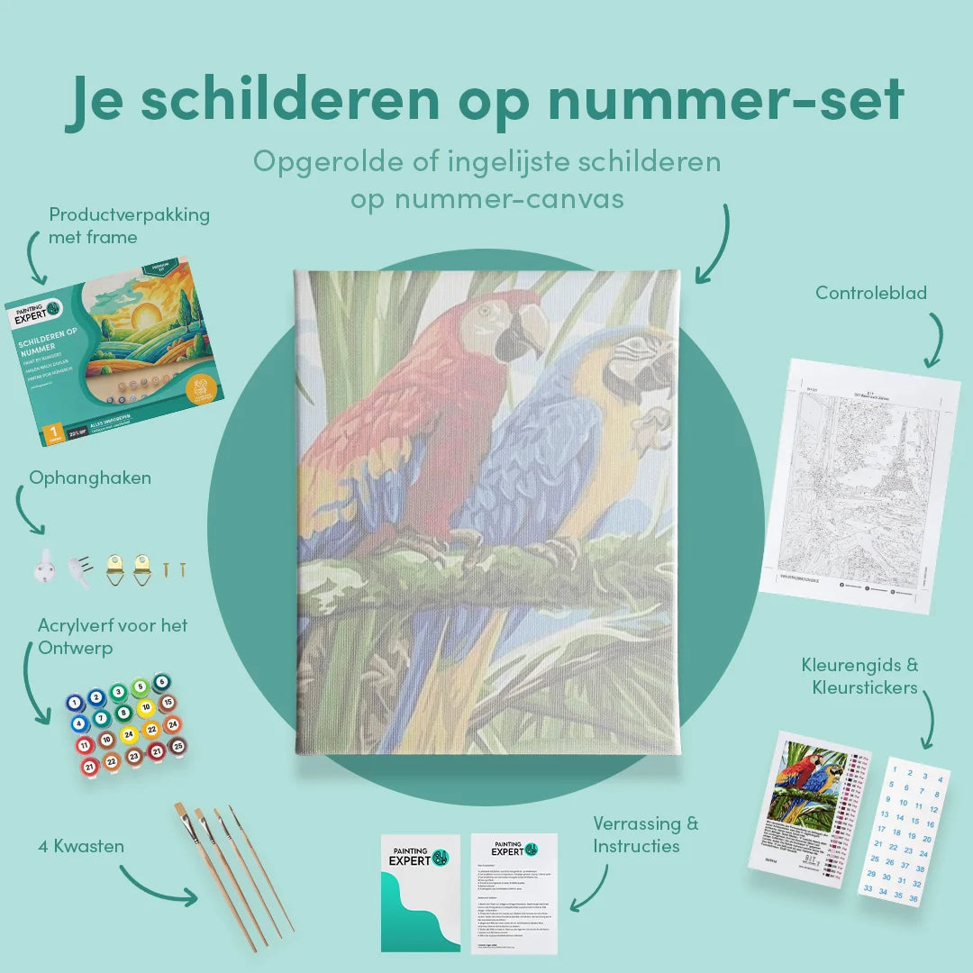 Bij ons ontvang je een compleet schilderen op nummer-pakket, inclusief alle benodigde materialen. Geen gedoe, gewoon direct beginnen! Elk pakket bevat:
