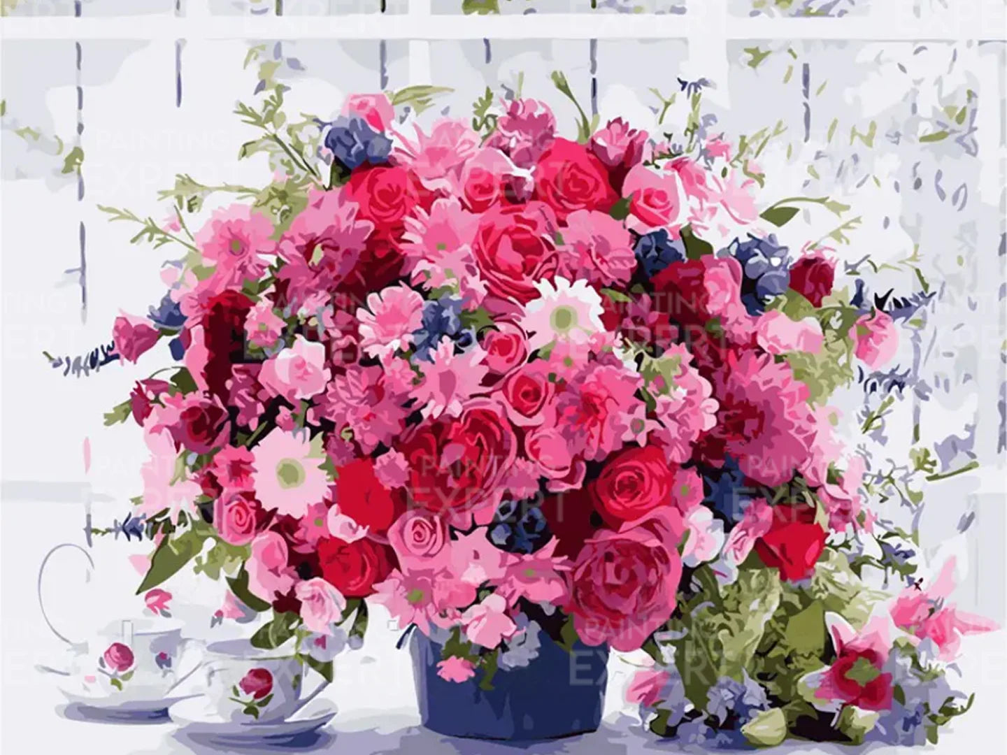 Schilderen op nummer Roze Bloemetjes met Koffiekopjes
