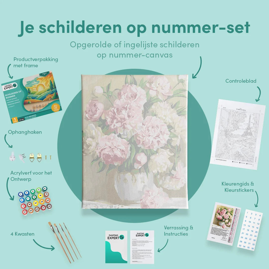 Bij ons ontvang je een compleet schilderen op nummer-pakket, inclusief alle benodigde materialen. Geen gedoe, gewoon direct beginnen! Elk pakket bevat:
