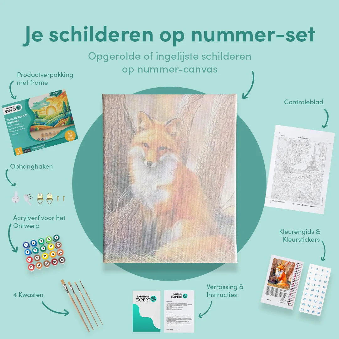 Bij ons ontvang je een compleet schilderen op nummer-pakket, inclusief alle benodigde materialen. Geen gedoe, gewoon direct beginnen! Elk pakket bevat: