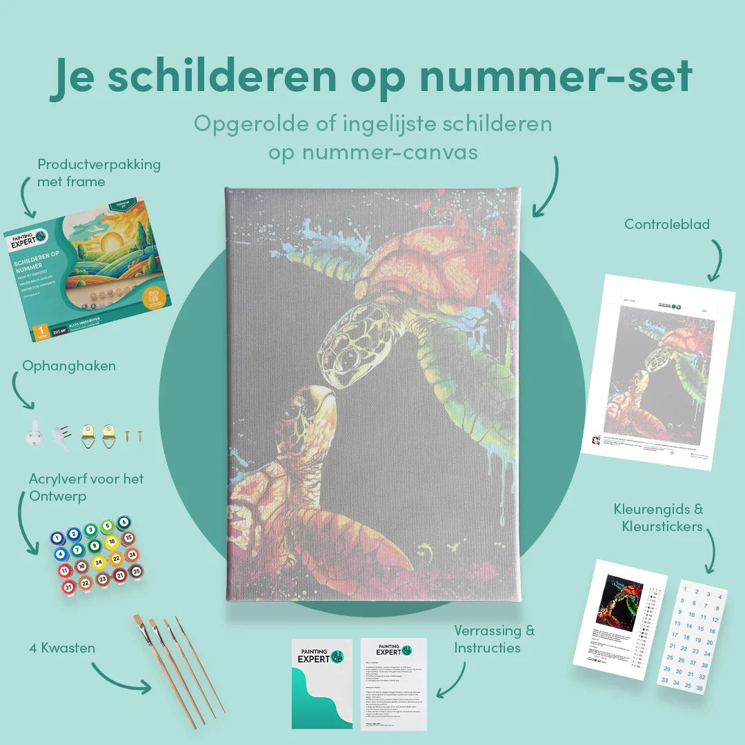 Bij ons ontvang je een compleet schilderen op nummer-pakket, inclusief alle benodigde materialen. Geen gedoe, gewoon direct beginnen! Elk pakket bevat: