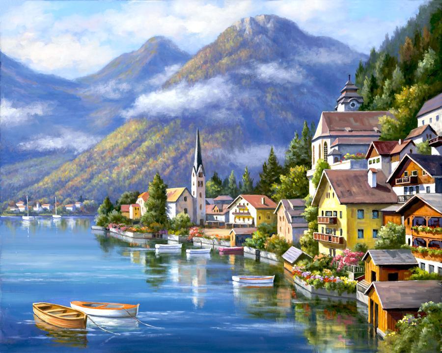 Schilderen op nummer Stadje bij de Bergen