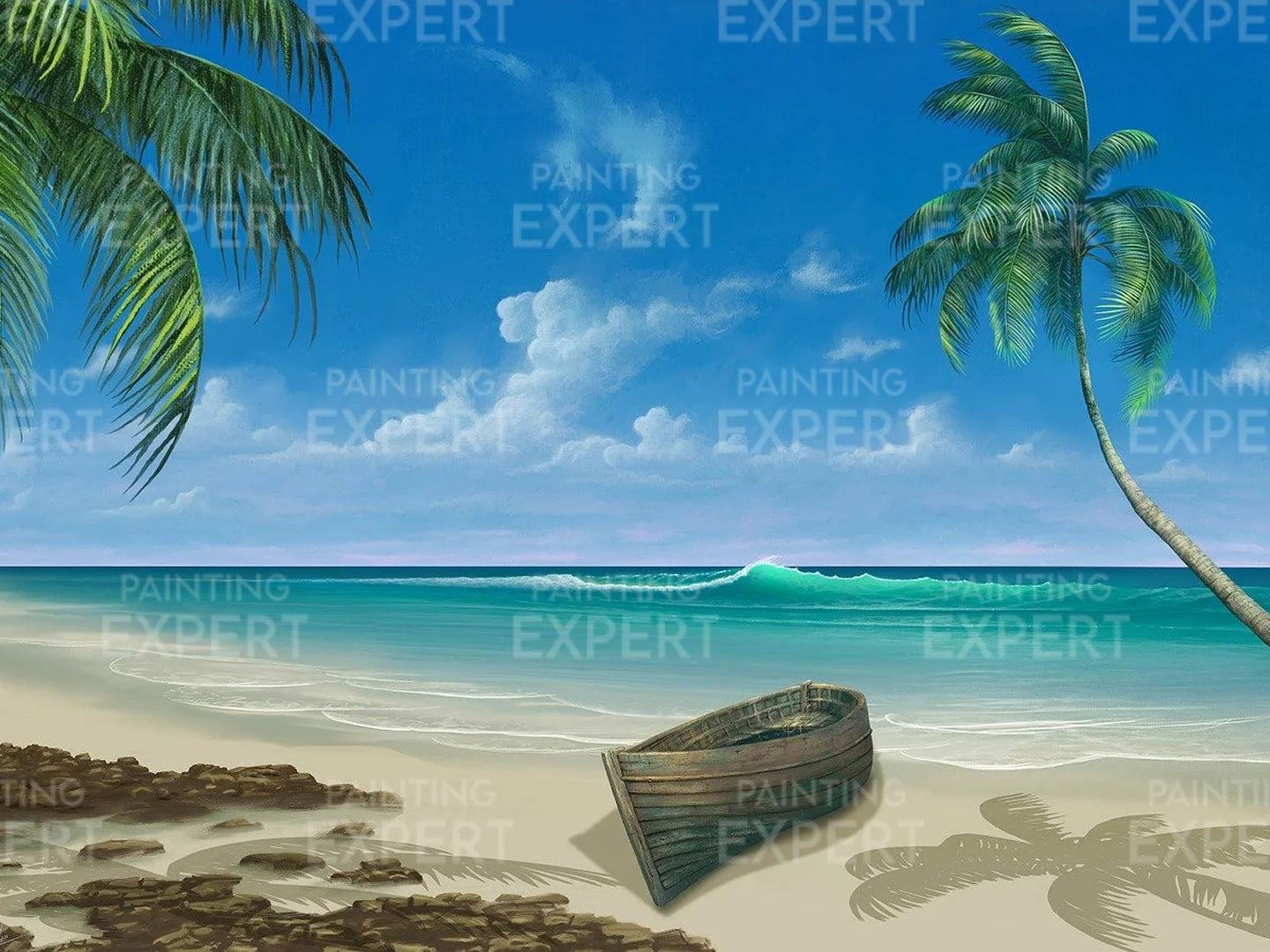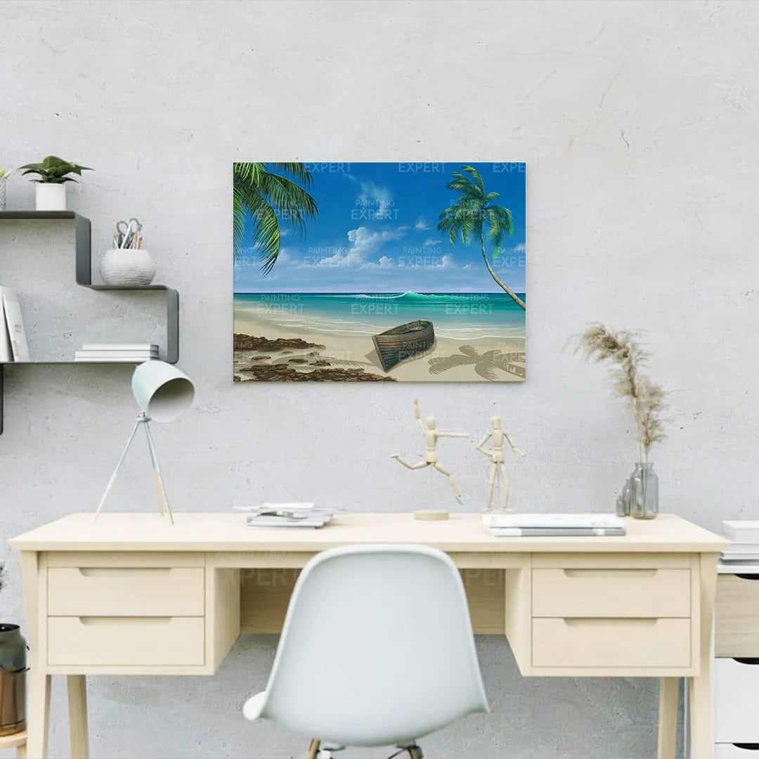 Schilderen op nummer Strand met Bootje en Zee
