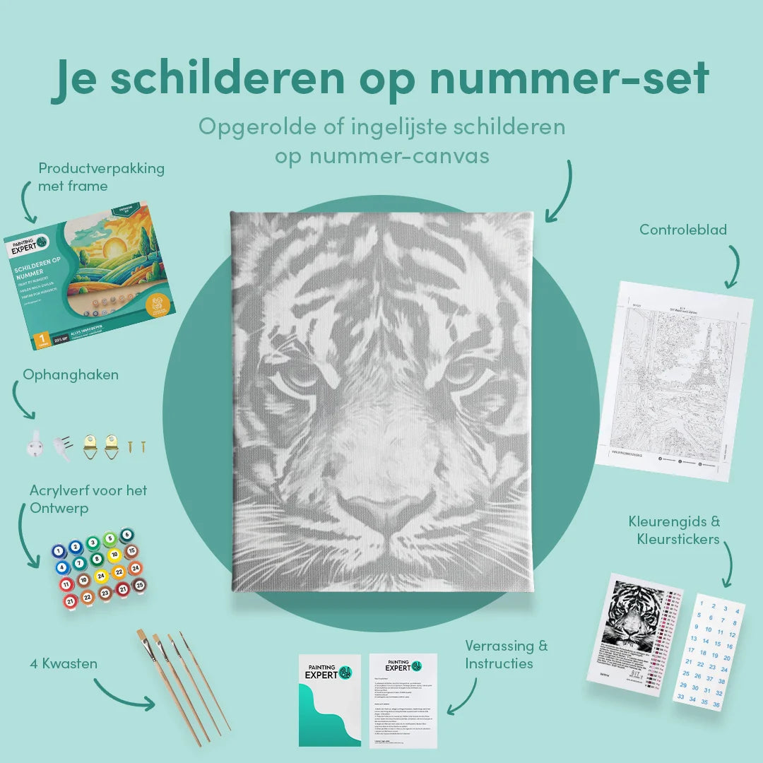 Bij ons ontvang je een compleet schilderen op nummer-pakket, inclusief alle benodigde materialen. Geen gedoe, gewoon direct beginnen! Elk pakket bevat: