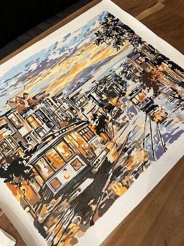 Mooi gedetailleerd schilderij met mooie kleuren, je krijgt er veel soorten kwastjes bij en het doek wordt geleverd zonder vouwen. Erg blij mee!