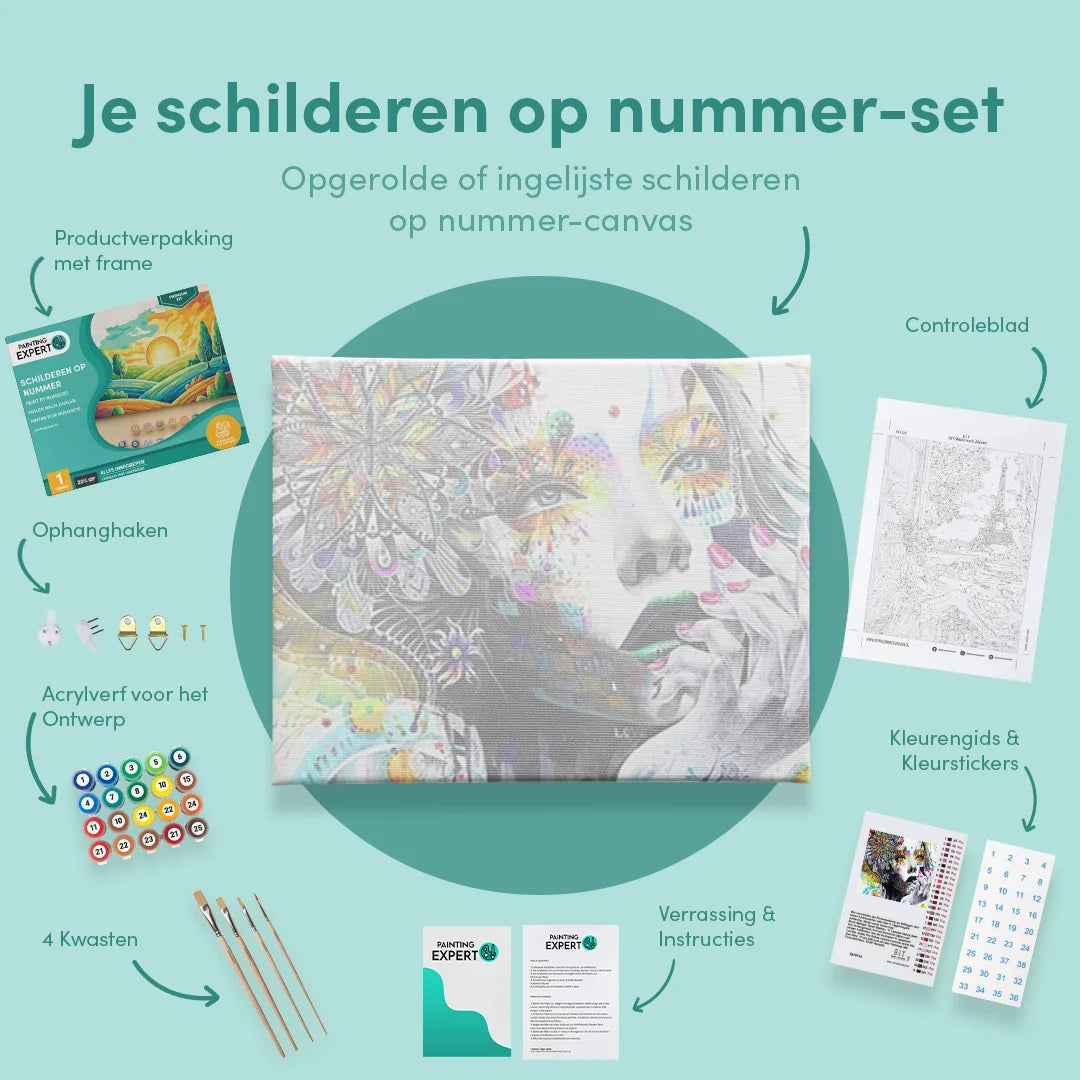Bij ons ontvang je een compleet schilderen op nummer-pakket, inclusief alle benodigde materialen. Geen gedoe, gewoon direct beginnen! Elk pakket bevat: