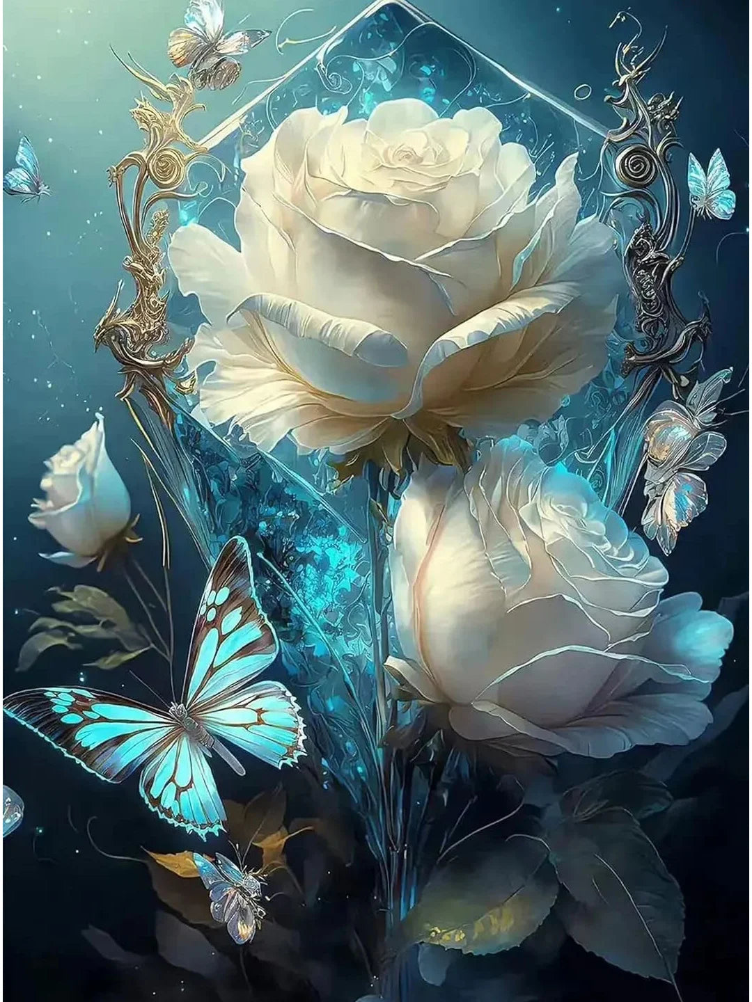 Schilderen op Nummer Tijdloze Witte Bloemen